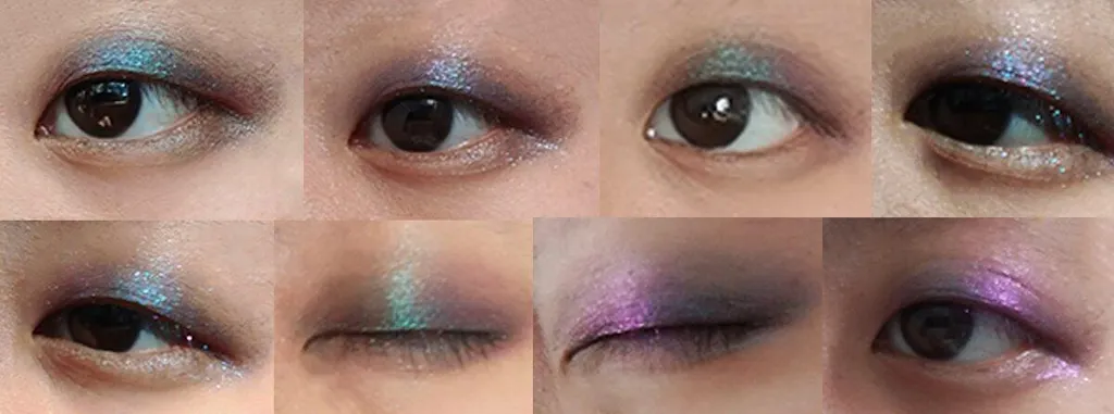 Galaxsea has a dark, translucent smoky base that is kind of a black or dark navy color, with truly duochrome fine sparkles that are teal and magenta-violet. I found it a bit challenging to attempt to build up opacity or to blend edges out - it feels a bit slippery, even a bit oily, noticeably different than the texture and behavior of the Chroma Light Shadows and Lucent Cream Shadows by Moira. I find Chroma and Lucent easy to spread and blend; by contrast, I'm guessing these Supernova Glitz shadows should be tapped into place like a topper or accent glitter rather than like an eyeshadow you blend with. If I attempt to blend this formula, especially since the Galaxsea shade has a dark + sheer base, it can look slightly streaky. It's not super obvious from the photos I uploaded here, but I could definitely see it myself - it looked slightly smudgy. So next time, I'm planning to try a combo of a light primer, a brush, and not trying to drag and blend it all over, but just placing it where I want it on the lid. (So far I just tried it on my bare lid, no primer, and with my finger), The glitters are noticeably finer than Chroma and Lucent - not a bad or better thing, just creates more of a microfine sort of sparkle that can look like a sheen in indirect lighting. If you're interested in this shade because of the teal color, bear in mind that it's the glitter color and not the base color, so it's less of a teal eyeshadow than it is a teal shine on the lids (that shifts to a magenta sheen in different angles). Overall, I think it's an interesting shade. It reminds me of an oil slick or a very smoky version of a peacock's iridescence, and the strong duochrome makes this different from other blue-green shadows I have. I'll update this review if I get better results with different application techniques. On a different note, I will also say that in my experience so far (2 orders, many products), Moira has packed all my items really safely, nothing was damaged, and the customer service person who helped me was really helpful!